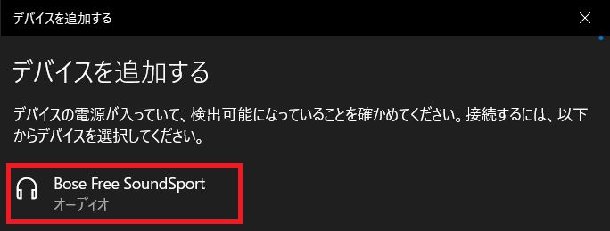 ※私は「Bose Free SoundSport」を使用していますが、ここにAirPodsの名前が出てくるイメージです。