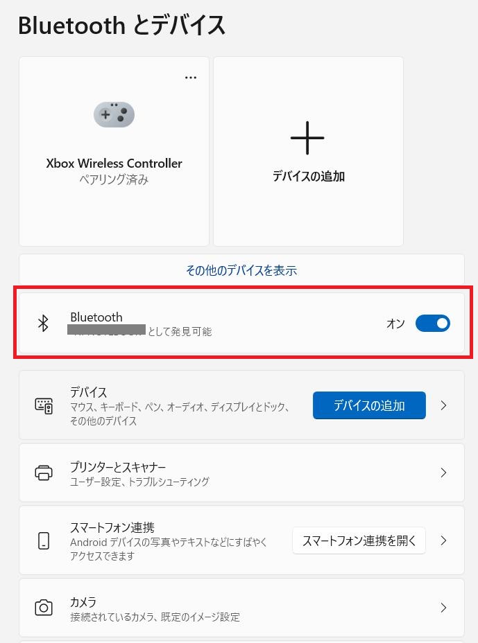 3. 「Bluetoothとその他のデバイス」部分でBluetooth機能がオンになっているか確認します。