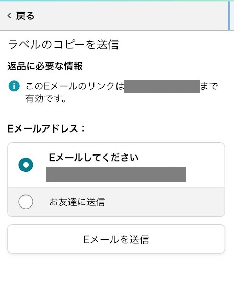 メールアドレスに返送用のラベルのコピーを送ることができます。