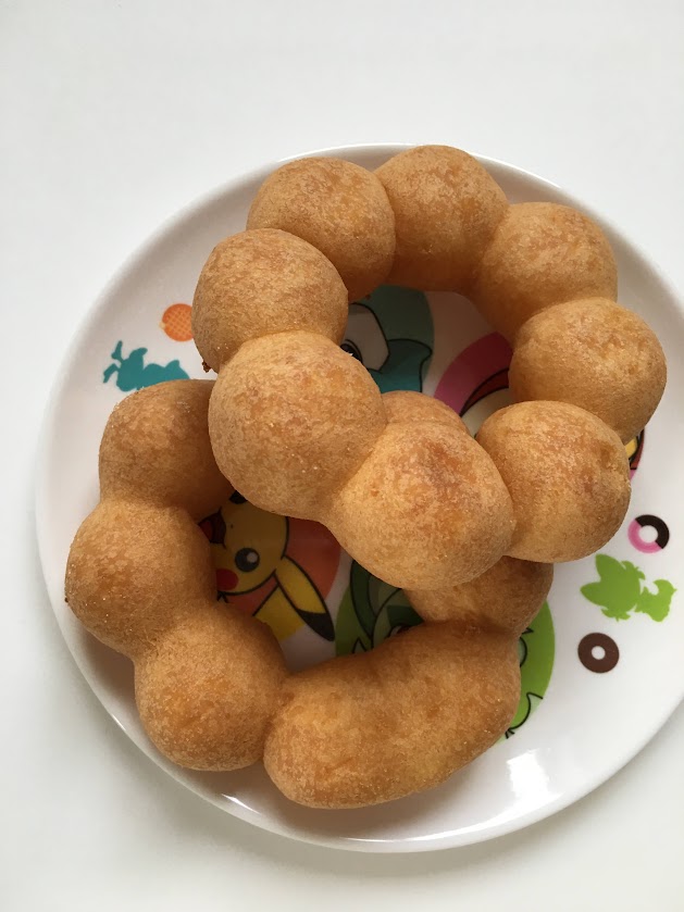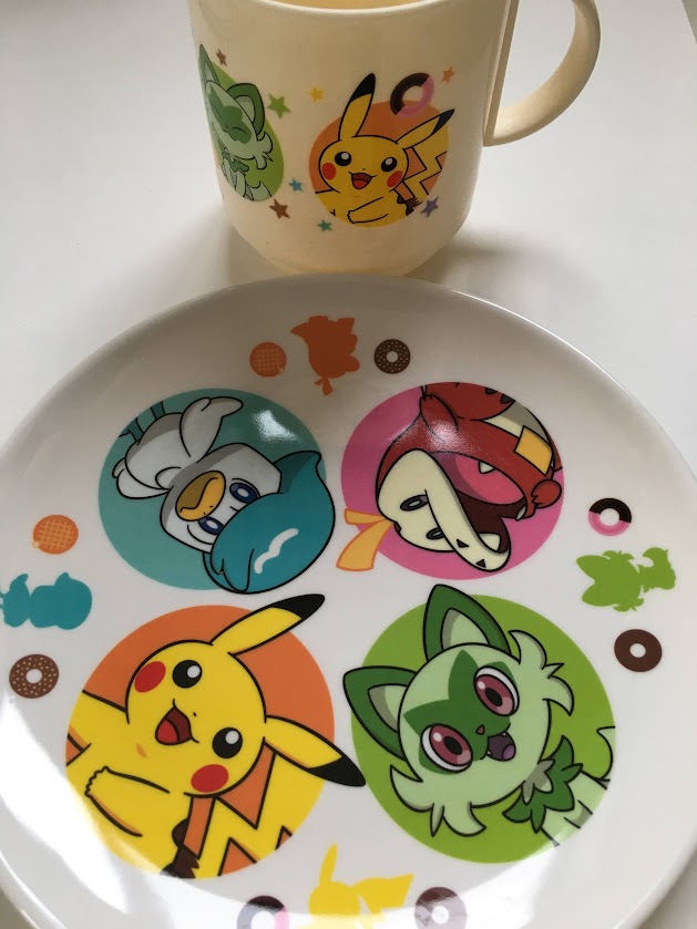 一緒にポケモンドーナツも購入し、お皿にのせて食べましたが、何度もポロッと落としそうになりました。