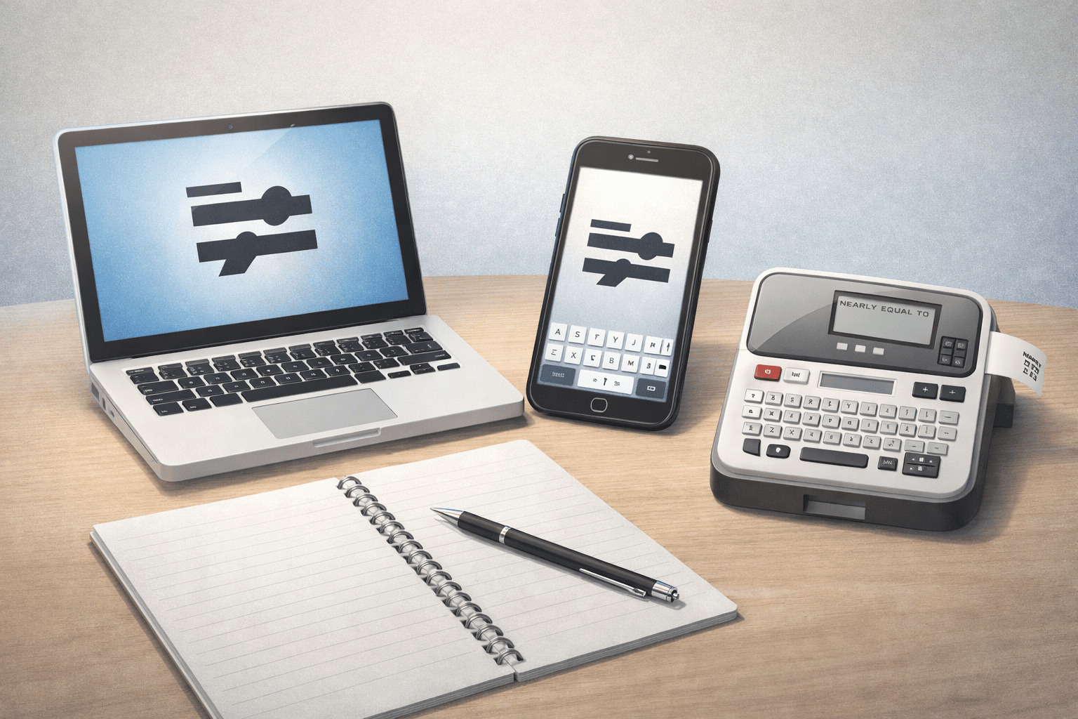 この記事では、ニアリーイコール「≒」をすぐに使えるように、コピペで使える記号をはじめ、パソコン(Windows・Mac)・スマホ(iPhone・Android)・テプラそれぞれの出し方をわかりやすく解説します。