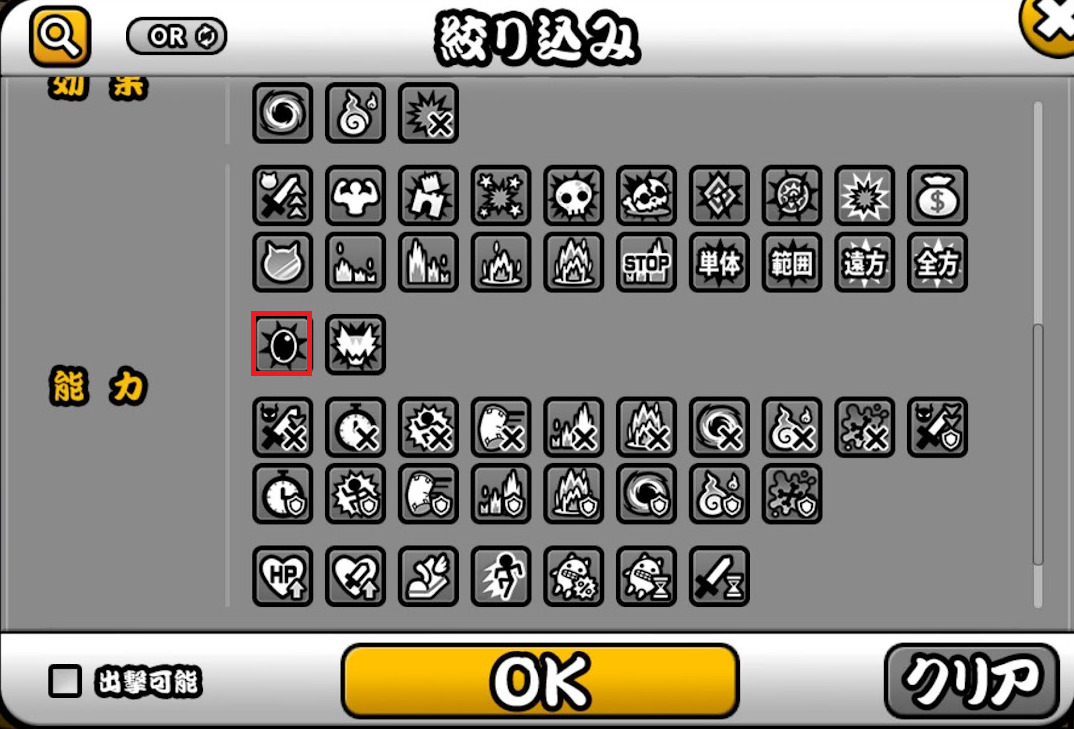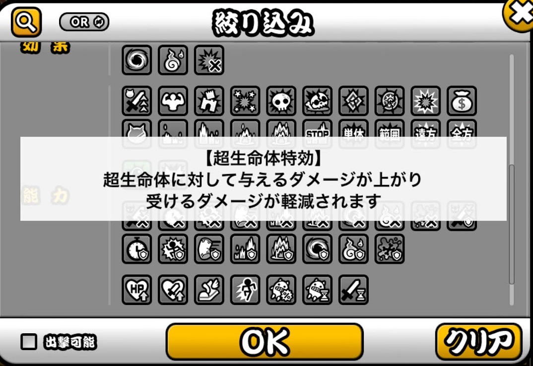 キャラクターの絞り込みにて超生命体を調べることができます。