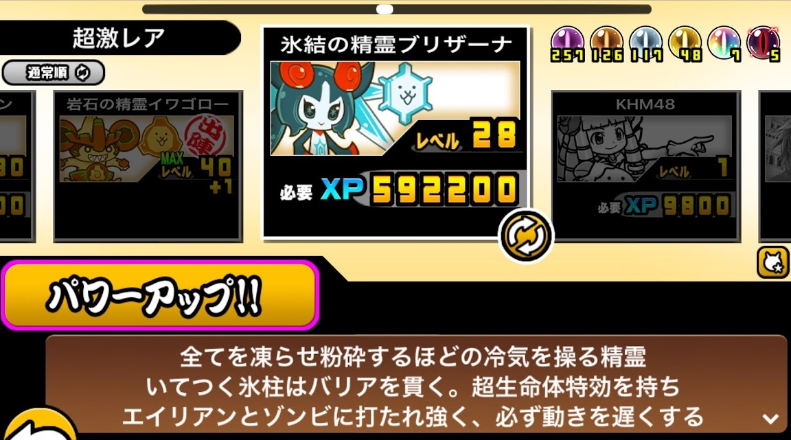パワーアップなどキャラクター画面に「超生命体特攻を持ち」と書かれています。