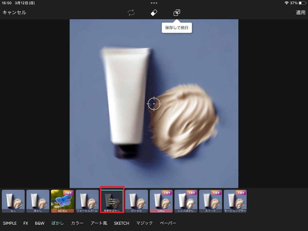 ぼかしをタップ