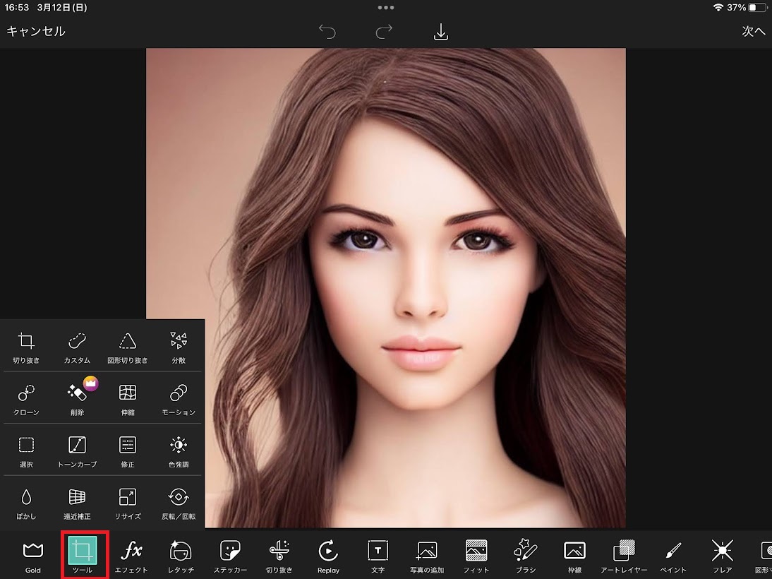 ツールをタップする