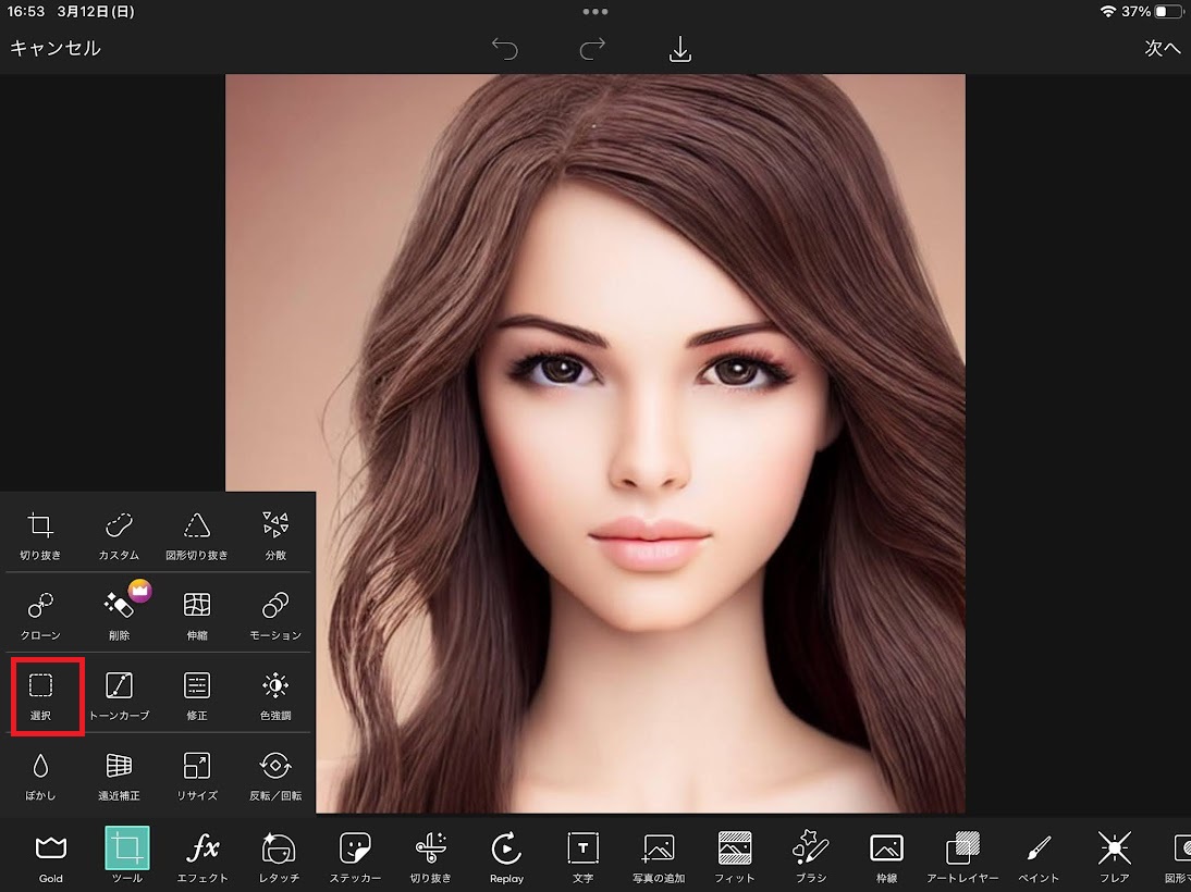 - 「ツール」から「選択」をタップ