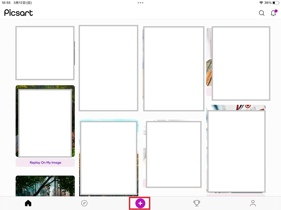 ホーム画面の「+」をタップして編集したい画像を選びます。