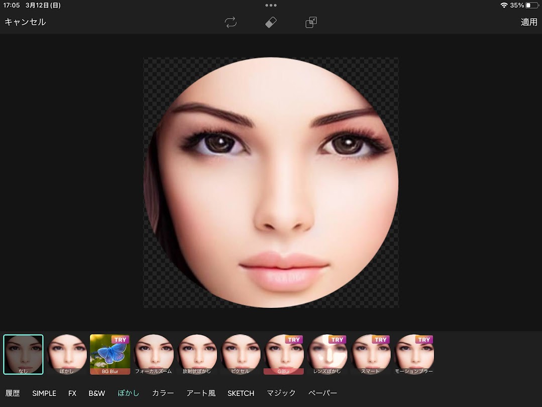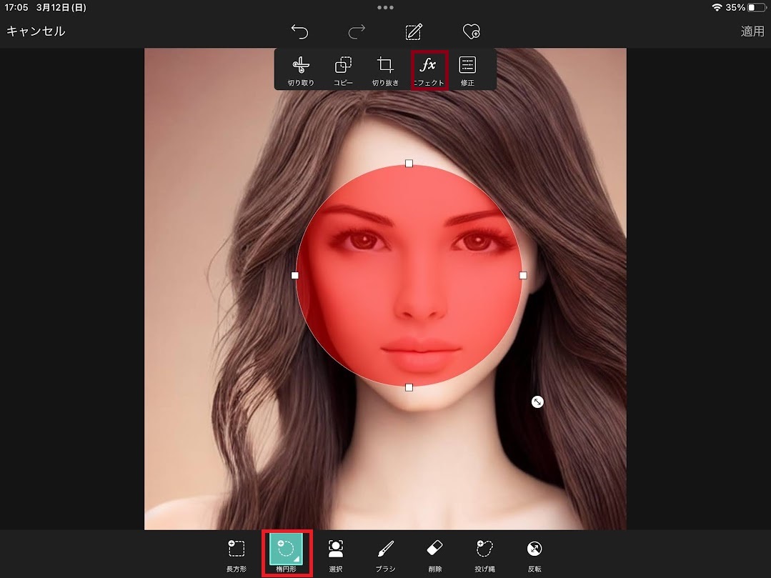 今回は顔にぼかしをかけたいので楕円形をタップします。