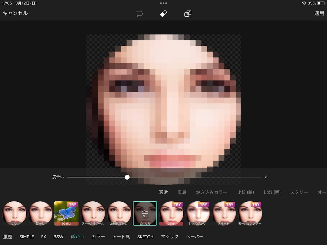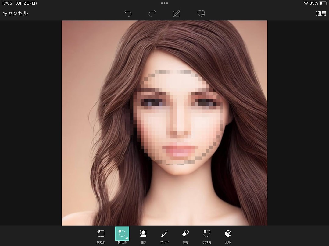 選択した顔の部分だけがピクセルでぼかすことができました。