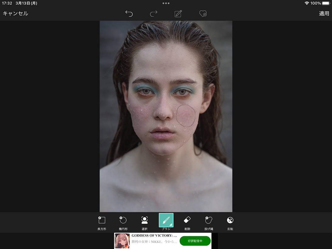 「柔らかいぼかし筆」を使えば、肌の荒れを自然にカバー可能。美肌加工として人気です。